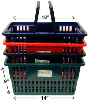 11059 PLASTIC SHOPPING BASKET WITH HANDLE 12 pieces per case 12/CS $3.99cents per piece; Other types of Shopping Baskets are available Please call us at (703) 980-1637 to order BACK TO CATALOG